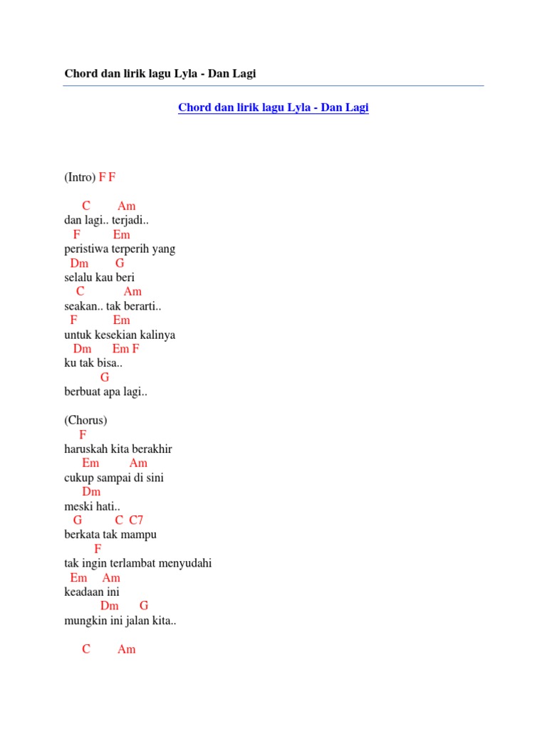 Lirik Lagu Dan Chord Kunci Gitar Dan Lagi Milik Lyla Mudah