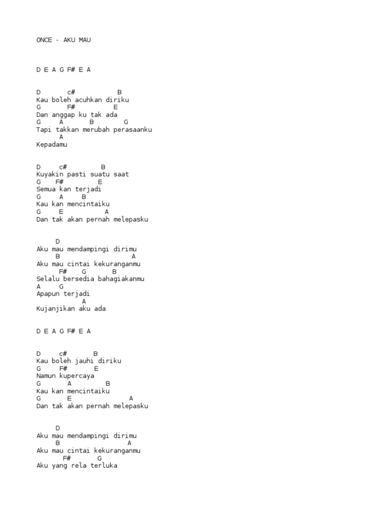 Chord Once Aku Mau Chord Gitar Indonesia Kumpulan Kunci