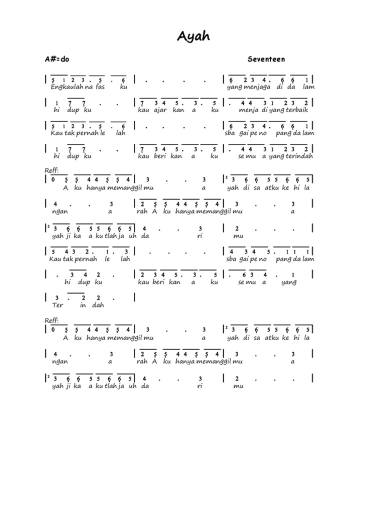 Not Angka Dan Lirik Lagu Ayah Seventeen Terbaru 2017 Not