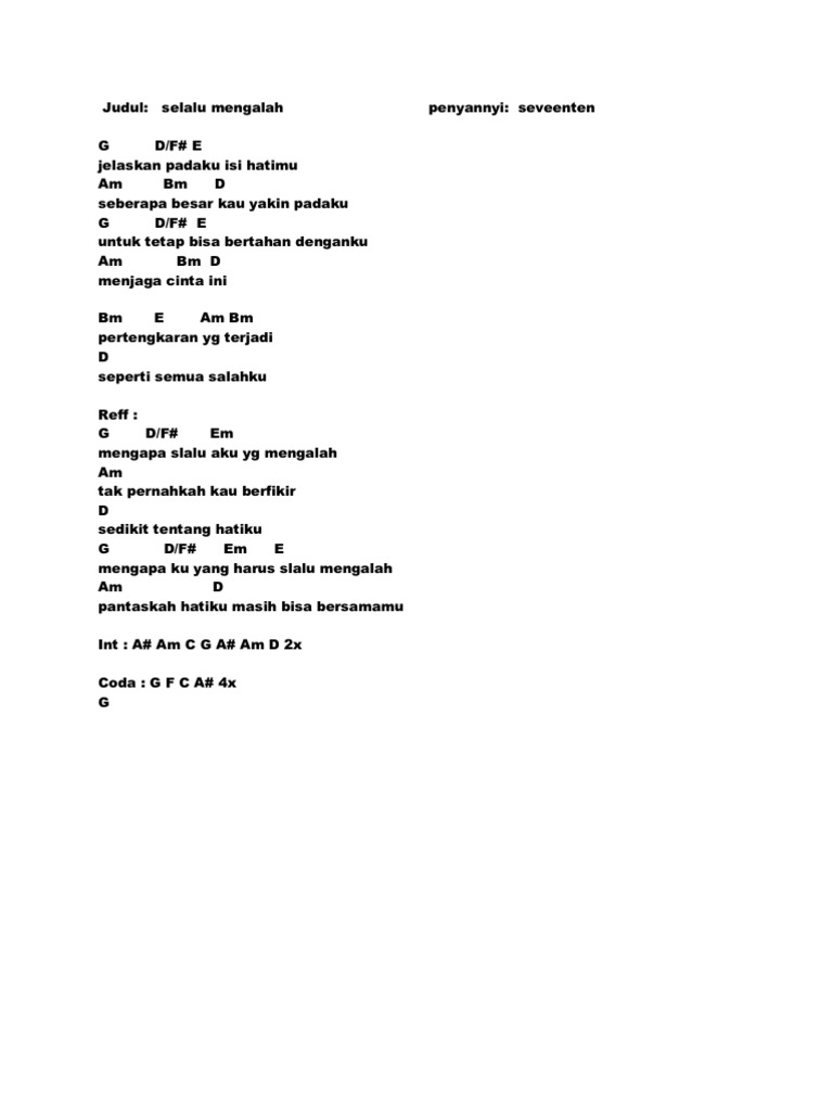 Chord Seventeen Yang Telah Merelakanmu From Gb Kunci