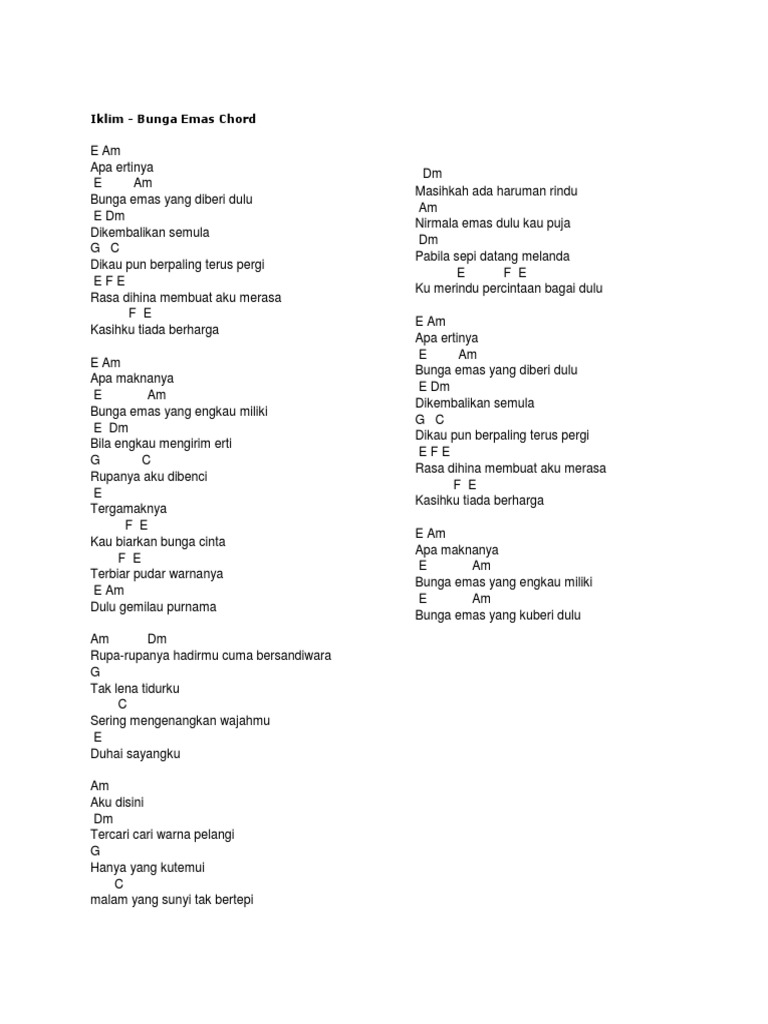 Kunci Gitar Dan Lirik Lagu Iklim Bunga Emas Kunci Gitar