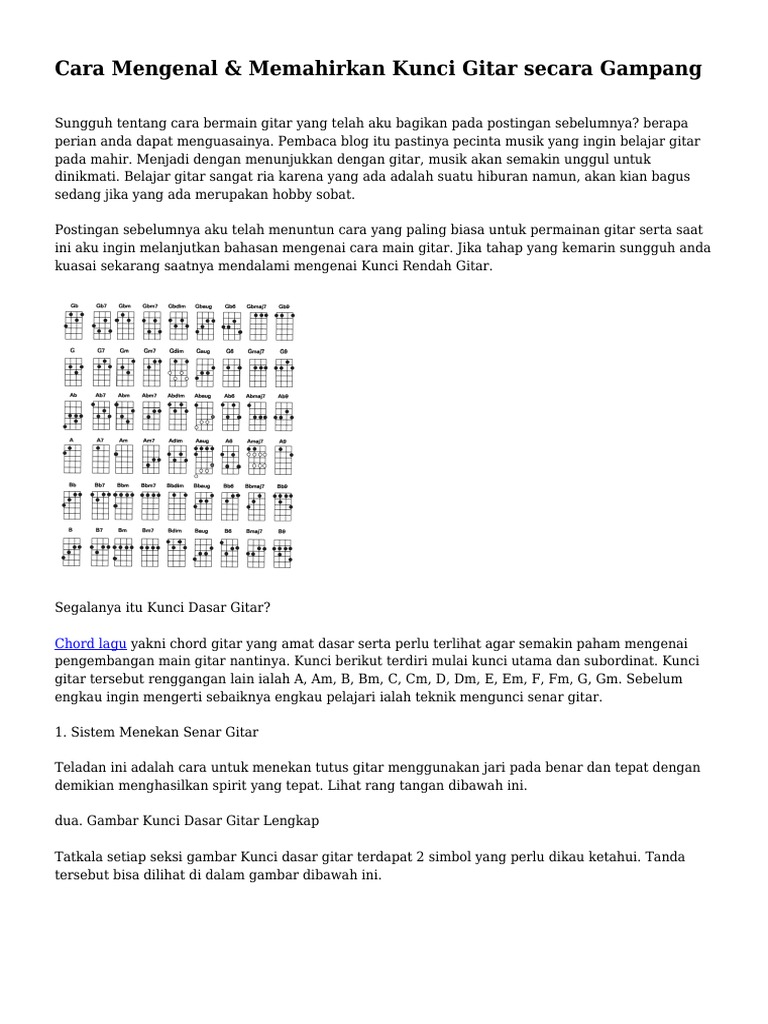 Kunci Gitar Belajar Cara Bermain Gitar Untuk Pemula