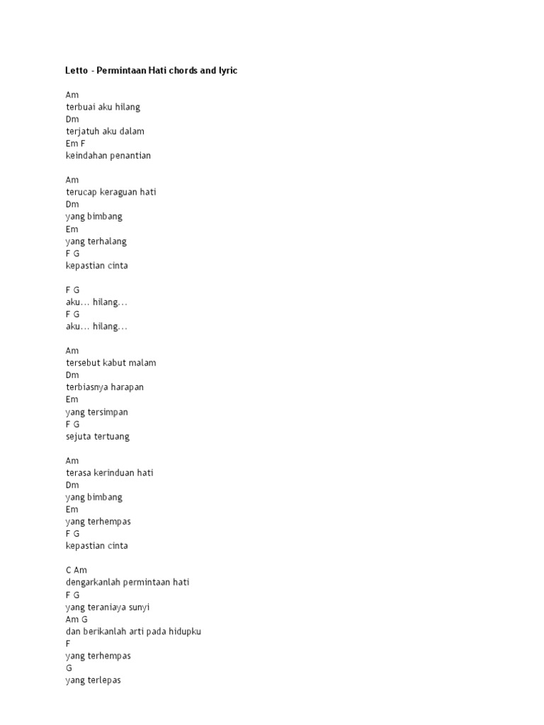 Lirik Dan Kunci Gitar Letto Permintaan Hati Lirik Chord